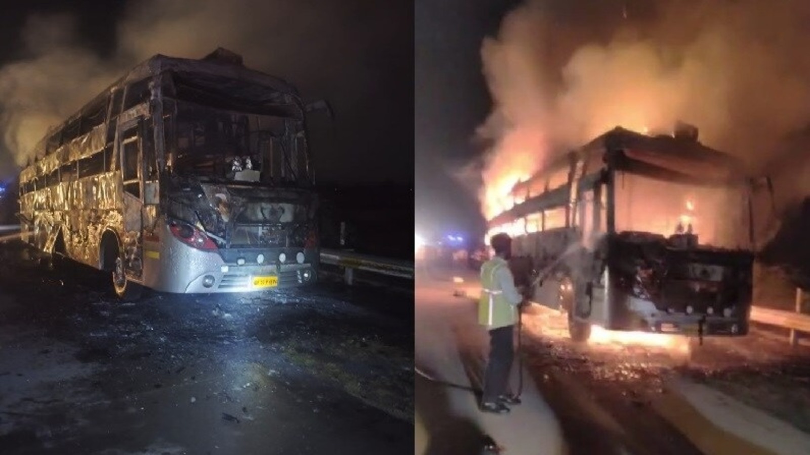 यमुना एक्सप्रेस वे पर चलती बस में लगी आग, 50 से ज्यादा यात्रियों की बची जान