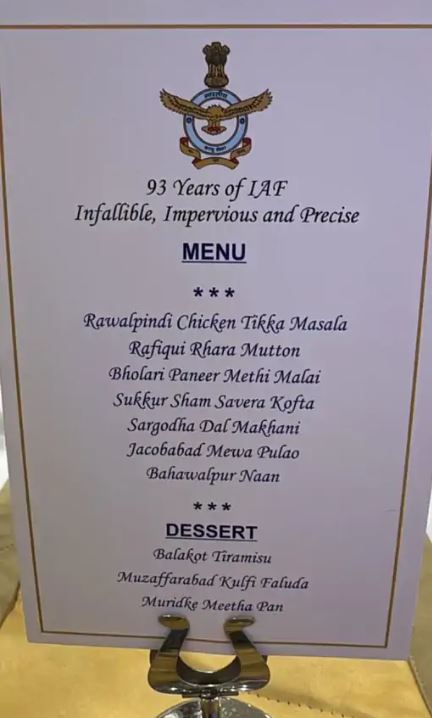 वायुसेना की 93वीं वर्षगांठ: डिनर मेन्यू में पाकिस्तान के ठिकानों के नाम, सोशल मीडिया पर वायरल, जानिए पूरा मामला