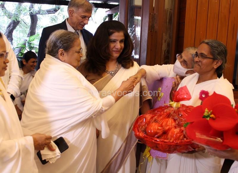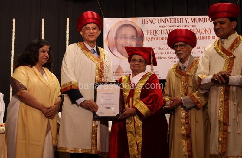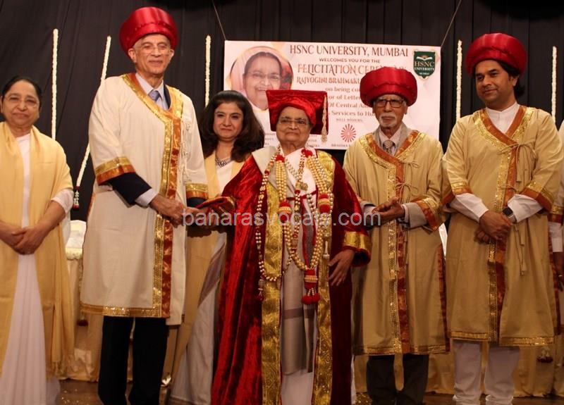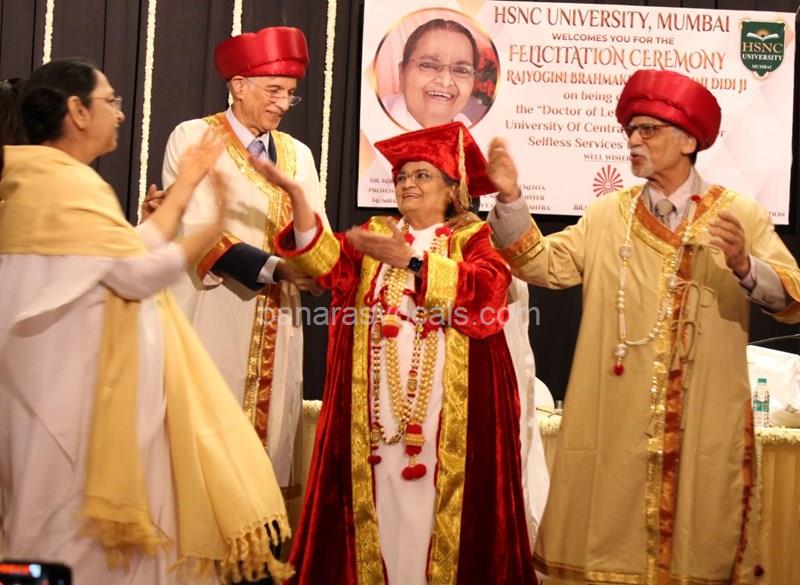 Dr. Niranjan Hiranandani Provost, HSNC University felicitates Rajyogini BrahmaKumari Nalini Didi ji on being conferred Doctorate Degree