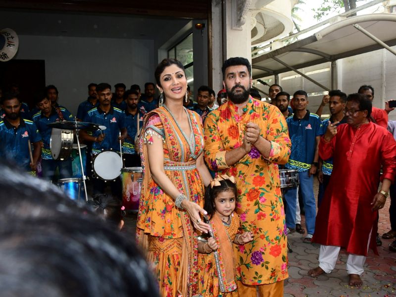 Shilpa Shetty And Shamita Shetty Ganpati Bappa Immersion At Her Residence